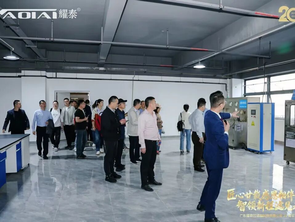 各位领导、嘉宾以及商会代表们在工作人员的引领和介绍下,集体参观了耀泰公司的现代化展厅与新落成的工厂,深入了解企业在过滤技术领域的创新成果与智造实力。